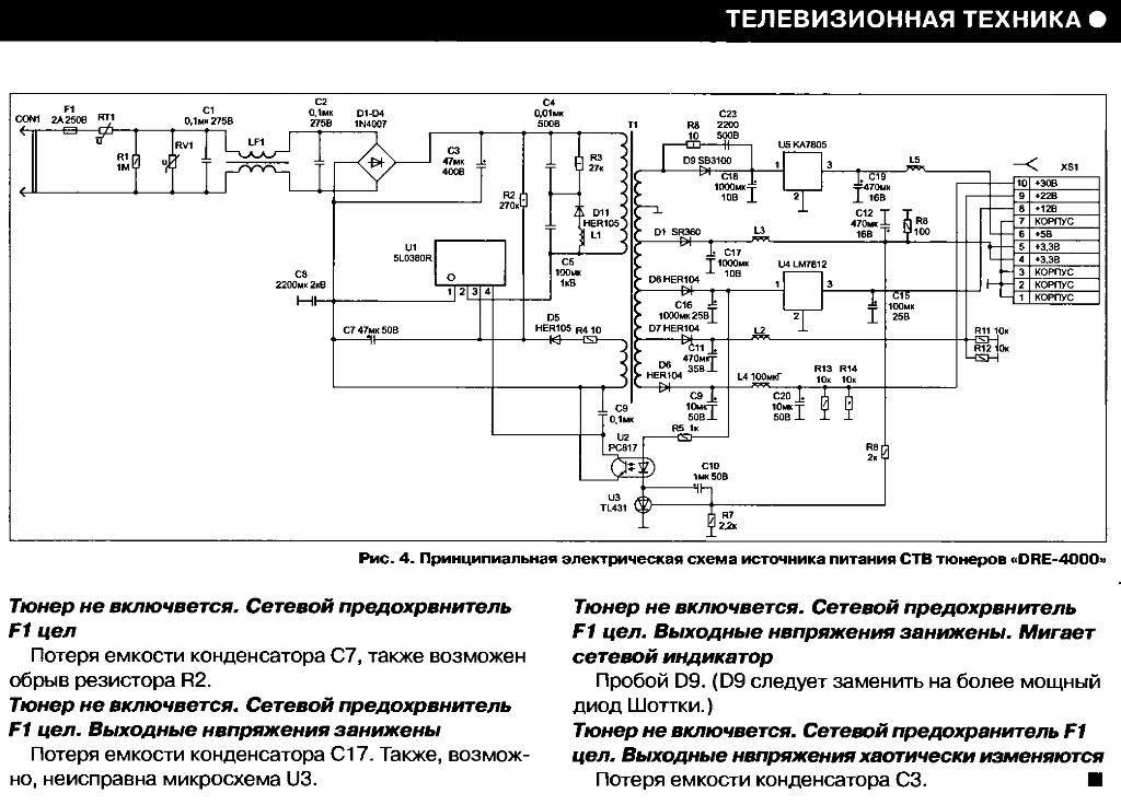 БП и типовые неисправности БП рессивера DRE-4000