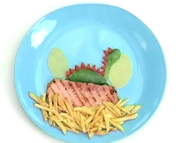 Красиво оформленное блюдо улучшает аппетит.Состав:свинное филе — 1 кусок;картофель — 4 штуки;сыр — 2 кусочка;укроп — 1 веточка;перец — 1 штука;соль, подсолнечное масло.